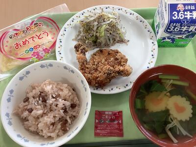 ★今日の給食は11月誕生日お祝い&はがまる君ランチです★