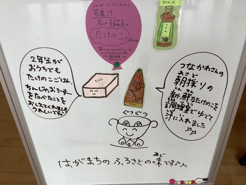 ■今日から2年生がランチルームを使ってくれています。ちょっとこれは苦手かも・・と言いつつも、毎日食べ残しが少なく、しっかり給食を食べている2年生。元気なごちそうさまが聞けて、給食室はとてもうれしいです。