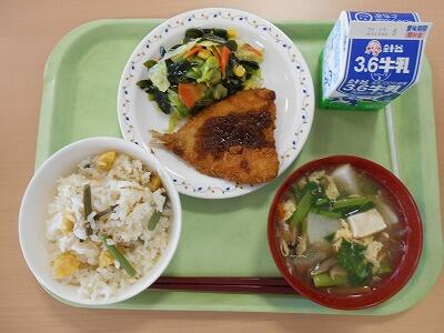 ☆今日の豚肉とごぼうのかりん揚げに1-2年生が収穫したさつまいもを使用しました☆