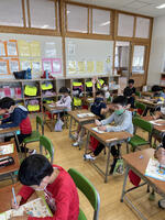 全校生が避難した後、各クラスで避難訓練の反省をしました。