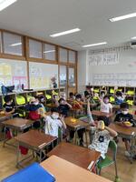 こどもたちは教室で、しっかり拍手をしたり、話を聞いたりしていました。