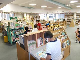 こどもの読書週間延長中。本を借りに来ている児童もたくさんいました。