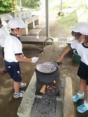 塩作りが終わり、次は、火おこし体験です。火はつくかな!?