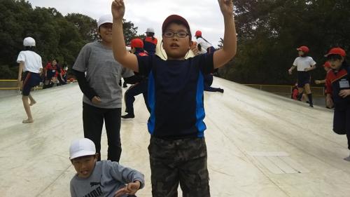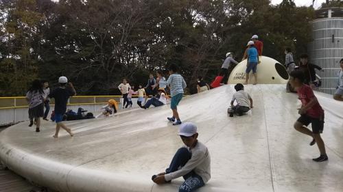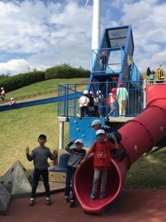 お弁当が食べ終わったので、どんぐりの森で遊んでいます。