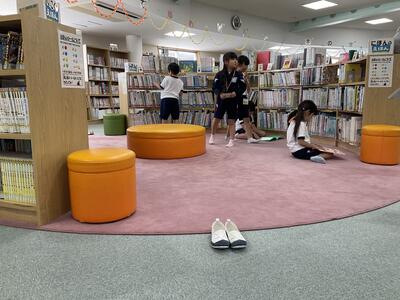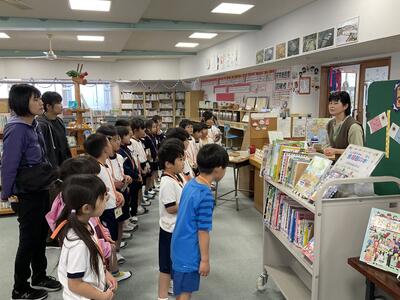 今日の1校時から2校時で、学校探検をしました。体育館、保健室、校長室、職員室、図書室、ランチルーム、図工室、理科室、音楽室の9つの教室を、2年生が1年生を案内して回りました。事前にインタビューしたことや見学に行って分かったことを生かし、しっかりと説明することができました。