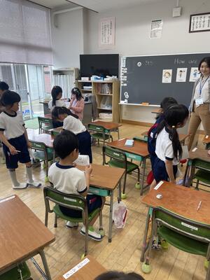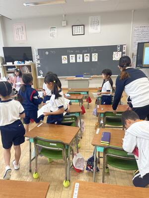 外国語活動がありました。挨拶の練習をしました。