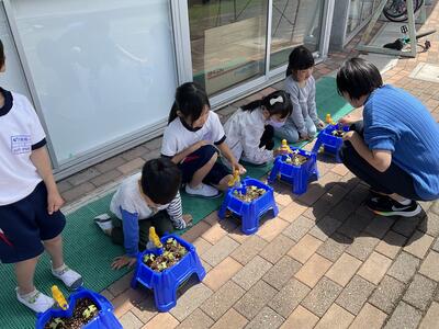 - 生活科の時間に、野菜の苗を植えました。