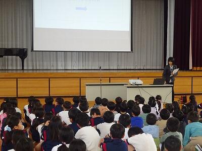 校長先生から、芳賀町が70歳の誕生日を迎えたことについてのお話がありました。