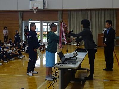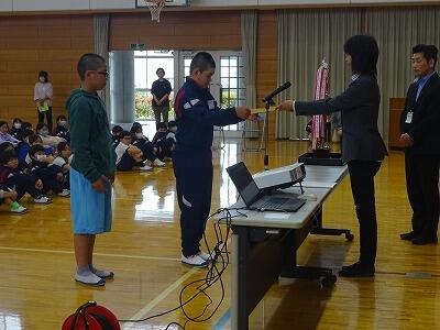朝会の前に、野球部の表彰がありました。