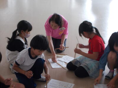 「みなみの会にじ」の方々が、昼休みに「竹がえし」を教えてくださいました。