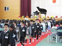 37名のかわいい1年生たちが入学してきました。新入生呼名では、みんな元気な声で返事をしました。話も良い姿勢で聞くことができました。