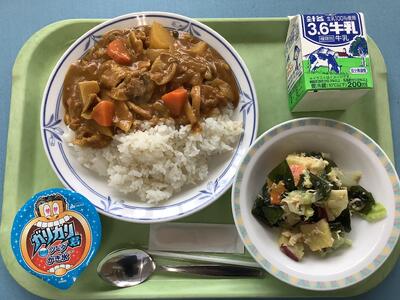 今日は芳賀町梨カレーライスの日でした。梨が入っているカレーライスで梨のシャリッとした食感と甘い味が美味しかったです。ランチルームでは梨クイズをしたのですが、さすが梨の里の生まれ育ちです。みんな正解していました。