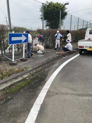 西高橋シニアクラブの11名の皆さんが、学校の敷地を囲んでいるベニカナメの木を剪定してくださいました。暑い中でしたが、午前中いっぱいをかけて、とてもきれいに剪定してくださいました。