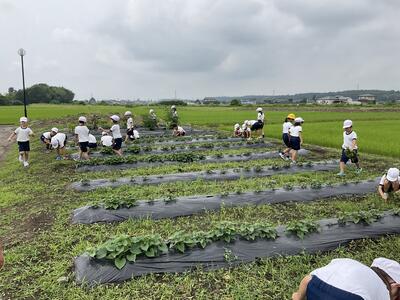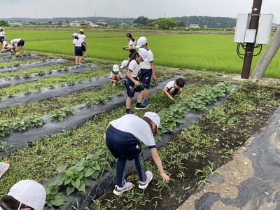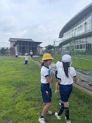 6月13日に東高橋自治会さんからいただいたコキアの苗を、校舎前の花壇に植えました。その後、自治会長さんが肥料をやりに来てくださったこともあり、丸く大きく成長中です。