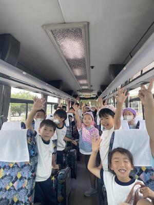 6月は水泳教室が2回ありました。「プール楽しかった人!」「はーい。」(バスは停車しています。)