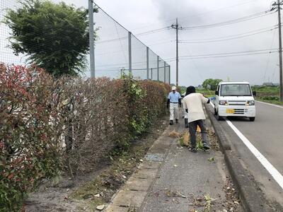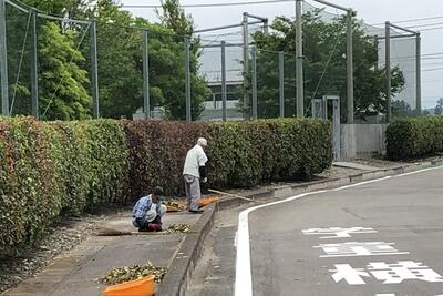 西高橋シニアクラブの11名の皆さんが、学校の敷地を囲んでいるベニカナメの木を剪定してくださいました。暑い中でしたが、午前中いっぱいをかけて、とてもきれいに剪定してくださいました。
