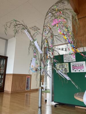 短冊には、習慣化したい健康目標が書いてあります。輪飾も児童が作ってくれました。