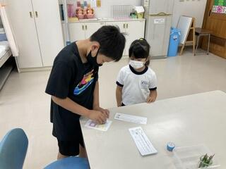 紙芝居2つを静かに楽しそうに聞いていました。七夕の季節に、七夕の由来をしることができました。最後のクイズもしっかりと答えていました。