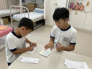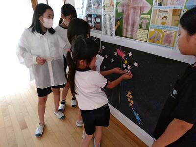 4年2組は「なぜ、七夕にささかざりをするの?」(紙芝居)「あくびはどんなときにでるのかな?」(紙芝居)
