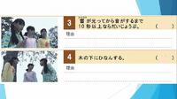 ◎校長先生から、自然や栃木県に関する問題が出され、子供たちは画面に向かって元気に答えていました。