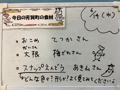 今日の給食では芳賀町産の作物をたくさん使用しています
