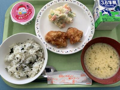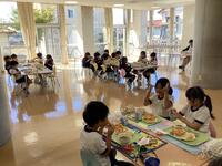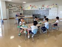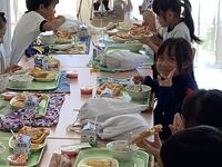 月曜日から1年生がランチルームを利用して給食を食べています。初日は緊張した様子で給食を食べていましたが、だんだん慣れてきました。向かい合って食べているので、みんなの食べている姿がよく見えますね。おいしい給食をみんなと一緒に美味しく食べて完食してほしいです。