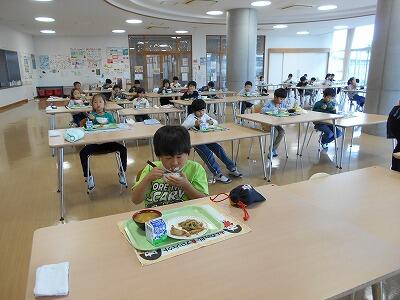 今日から2年生がランチルームでの給食です