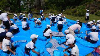 3つのグループに別れて、なかよし班対抗でゲームをしました。