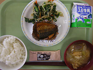 牛乳 ごはん さばの味噌煮 ごまあえ 豆乳汁 ウエハース
