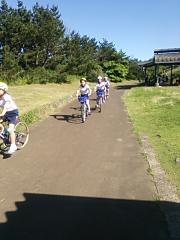 続いて3校時には、校庭に描かれた模擬道路を使って自転車乗りの練習をしました。西水沼駐在所警察官の青栁さん・交通教育指導員の野澤さん、PTA交通安全委員会、保護者ボランティアの皆様の御指導で有意義な練習ができました。特に一旦停止、左右、後方の確認、自転車を降りての安全な横断等を学習しました。チェックシートをお配りしましたので、一度の練習ではもちろん不十分ですから、家庭でも大切なことを確認していただきたいと思います。自転車等の点検もお願いします。