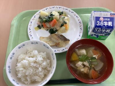 今日はバレンタインデーにちなみ、デザートにはミニエクレアを用意しました。感想を質問したところ、笑顔で「おいしかった!」と1年生が答えてくださいました。