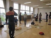放課後、教職員の心肺蘇生法の研修を行いました。