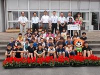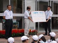 3校時に宇都宮地方法務局真岡支局長さんと芳賀町の人権擁護委員さん5名・町住民課の方をお迎えして、人権の花贈呈式が行われました。