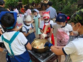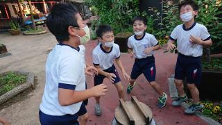 3つのグループに別れて、なかよし班対抗でゲームをしました。