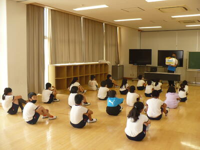 3年2組は清田先生から、夏休みの読書感想文の書き方についてお話があり