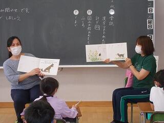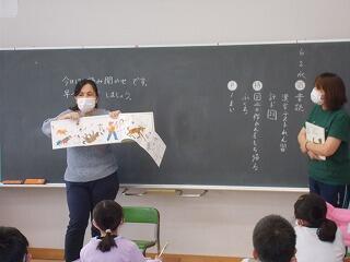司書の伊藤先生とALTのマルセラ先生の読み聞かせがありました。