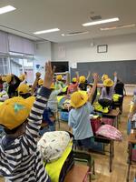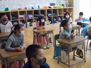 余談ですが、朝の会を始めた他のクラスからは、「県民の歌」が聞こえてきました。