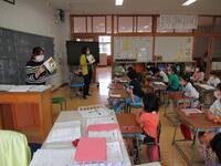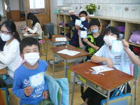 5年生の家庭科では、裁縫の時間に元教員の方たち(=マスターズボランティア)に、手縫いの学習に御協力をいただきました。