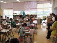 読書の大好きな6年生、日本語と英語で繰り返される物語に真剣に聞き入っていました。