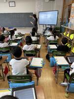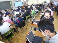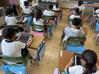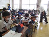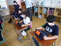 お互いに「どうやってそのページに進むの?」「ここをタップするんだよ。」と、教え合いながら、操作していました。今日学んだことによって、授業での活用がますます進みそうです。