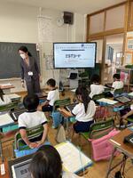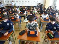 子供たち一人に一台ずつ導入されたiPadの基本操作を、校長先生に教えていただきました。