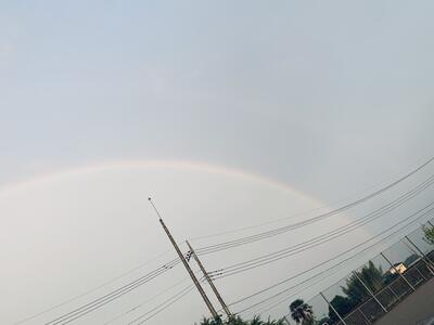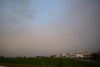 職員室からきれいな虹を見ることができました!珍しいことに、副虹といって、虹より一回り大きい虹も見ることができました!