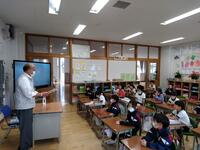 3〜6年生は、自転車の安全な乗り方について学びました。1・2年生は、道路の正しい歩き方について学びました。