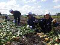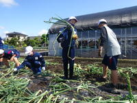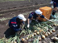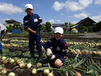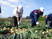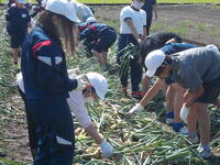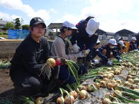 5月28日(水)に江間田農園圃場で玉ねぎの収穫体験を行いました。