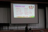 「しあわせのバケツ」の話で、ふわふわことば(言われたらうれしくなる言葉)やちくちくことば(言われたら傷つく言葉)についての話でした。