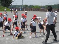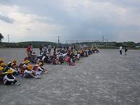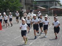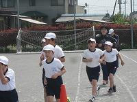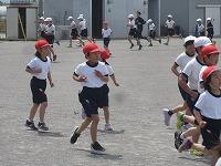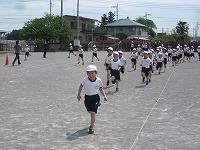 音楽に合わせて、各クラス毎に準備運動をしてから一斉に5分間走をしました。