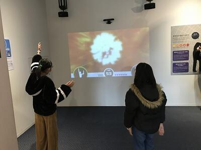 震災について、映像や展示物で学習しました。