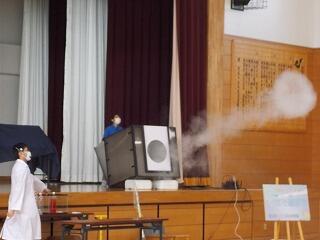 空気砲をはじめ、空気の重さや空気の破壊力を知る実験など、空気を使った様々な実験をたくさん見せていただきました。