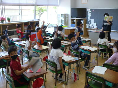 今日はこども読書の日だそうです。1年生から、司書の伊藤先生より読み聞かせの活動が始まりました。