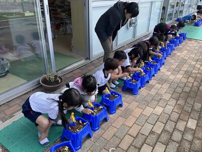 1年生の様子 4月30日〜5月2日 投稿日時 : 2024/05/02 teacher カテゴリ: 生活科でアサガオの観察をしました。芽が出ていました。 外国語活動がありました。挨拶の練習をしました。 アサガオのお世話をしました。火曜日より少し大きくなっていました。 図書室で本を借りました。